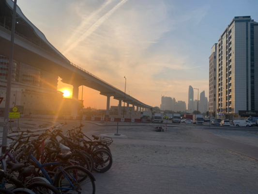 ドバイの朝と、開通したばかりのGreen Line、Al Jadaf 駅です。