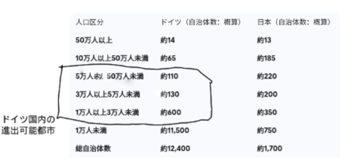 ・ドイツは地方分権型の国家で、大都市が少ない割に、独立した経済圏を営む中堅〜中小都市が多数存在します。