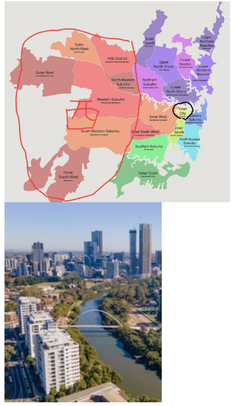 2024年、シドニー大都市圏の人口は556万人になりました。その年、シドニー西部(Greater Western Sydney)の人口は279万人に達し、史上初めて50%超に到達。平地に恵まれた西部は今や、シドニー全体の人口と経済を牽引する存在になりました。西シドニー空港の開港を来年(2026年)に控え、エリア最大都市パラマタの高層ビルは上に向かって伸びる一方。