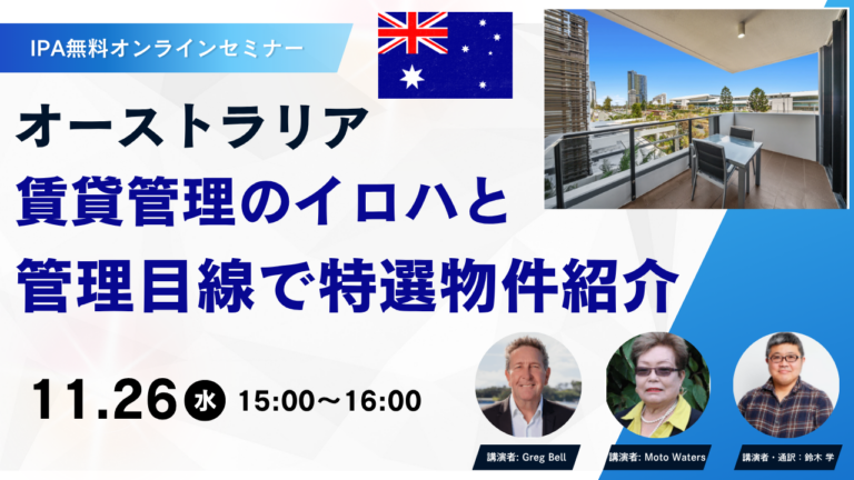 11/26 無料オンラインセミナー「オーストラリア賃貸管理のイロハと、管理目線で特選物件紹介」