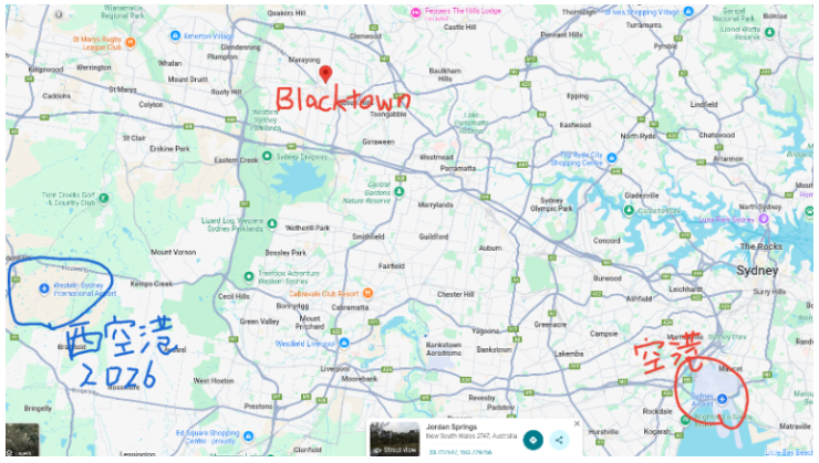 すでに便利な電車で都心直結する上に、西空港の恩恵も受けそうなブラックタウン(Blacktown)