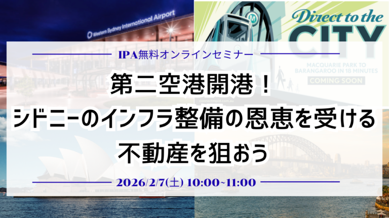 2/7 無料オンラインセミナー「第二空港開港!シドニーのインフラ整備の恩恵を受ける不動産を狙おう」