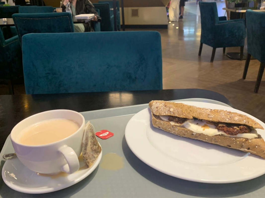 ハンガリーのブダペスト空港で乗り継ぎ中、目的地マルタ島行きの飛行機が2時間遅延したお詫びということで、Wizz Air(航空会社)からミールクーポンが出て、それを使って食事しています。